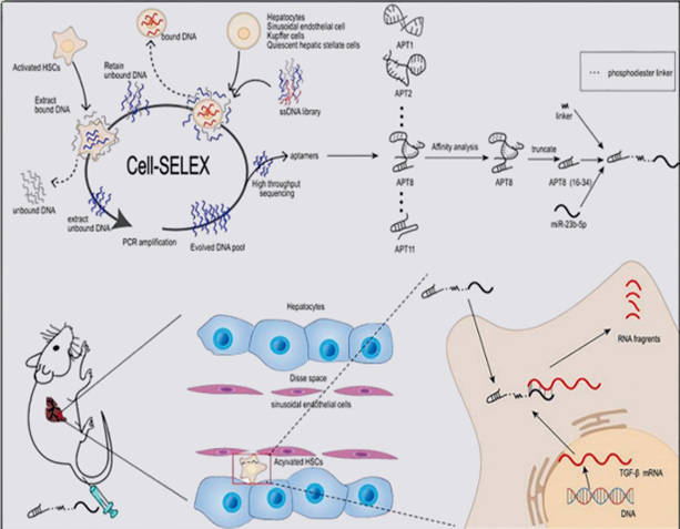 ⽬前,⻉罗尼集团已通过SELEX技术,获得靶向活化型肝星状细胞的递送⼯具-- 核酸适配体(Aptamer);递送功能核酸,靶向进⼊活化型肝星状细胞,治疗肝纤维化和肝硬化。